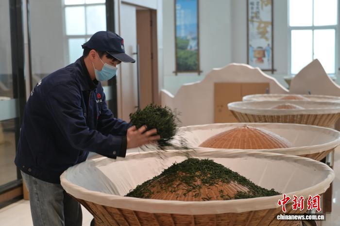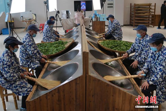 4月14日,正在位于年夜别山区的安徽省6安市的1家6安瓜片茶企内乱,任务职员正正在炒茶。6安瓜片是华夏10年夜实茶之1,也是绿茶家属中唯独无芽无梗、由单片死叶造成的茶。中新社记者 弛强 摄