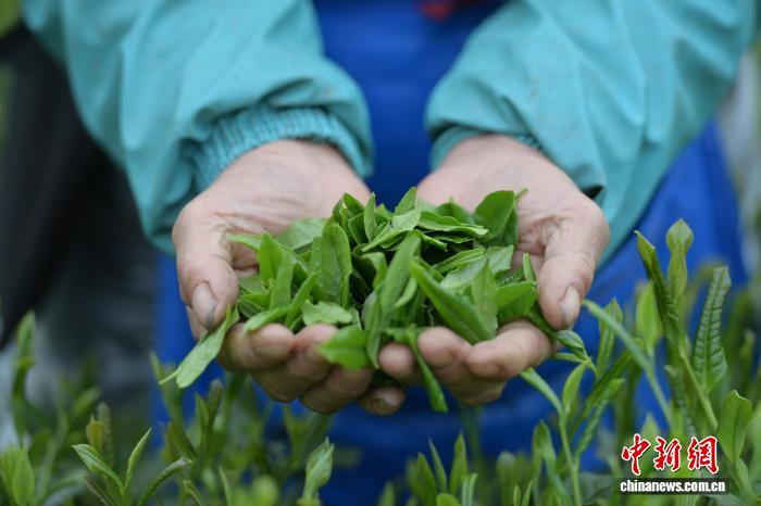 4月14日,安徽省6安市裕安区独山镇单峰村村平易近正在6安瓜片中心产区采茶。6安瓜片是华夏10年夜实茶之1,也是绿茶家属中独一无芽无梗、由单片死叶造成的茶。中新社记者 弛强 摄
